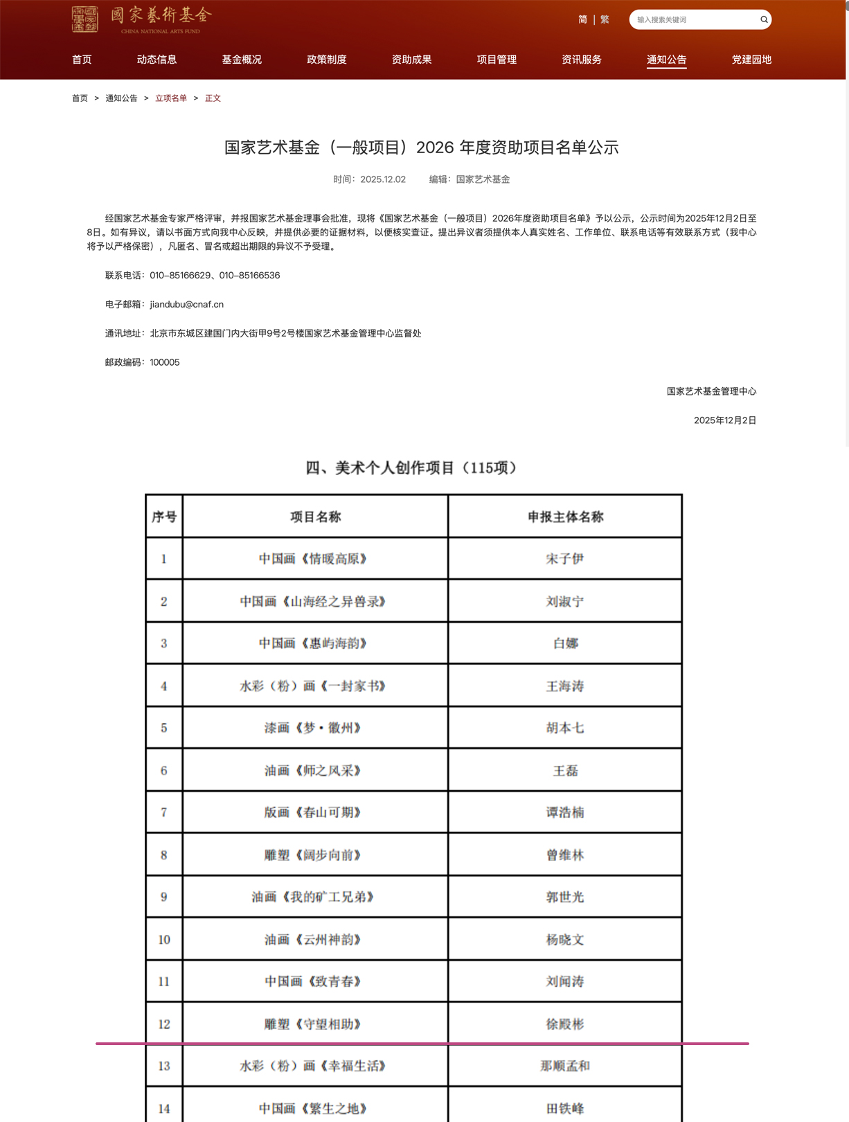 近日,国家艺术基金(一般项目)2026年度资助项目复评结果公布,我校美术学院副教授徐殿彬的雕塑艺术创作《守望相助》获批美术个人创作项目。国家艺术基金是经国务院批准设立的,旨在繁荣艺术创作、打造和推广精品力作、培养艺术人才、推进国家艺术事业健康发展的公益性基金。此次获批,既是对我校教师深耕艺术、扎根生活创作的肯定,也是我校深耕艺术教育、坚守文化传承创新使命的重要成果。学校将以此次获批为契机,进一步激发科研工作者创作活力,打造更多精品力作,为地域文化赓续传承贡献艺术力量。